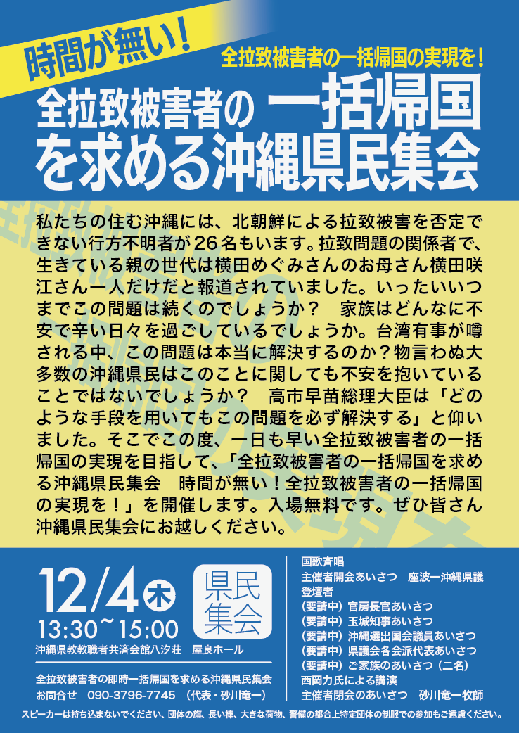 北朝鮮による拉致問題の解決を求めるイベントを行います。