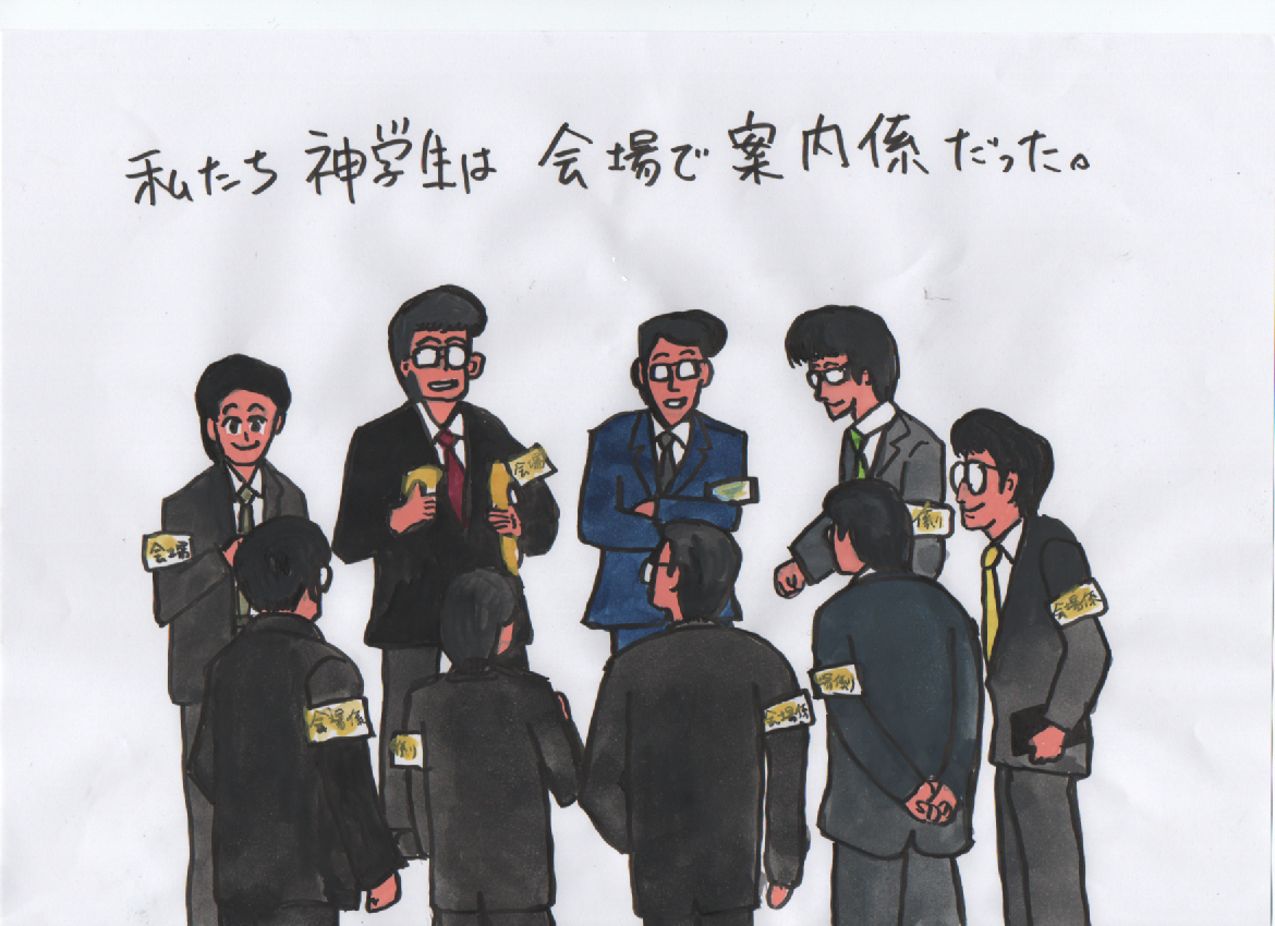 私は二階の階段の通路に腰を下ろして世界一の牧師の説教を聞いた。