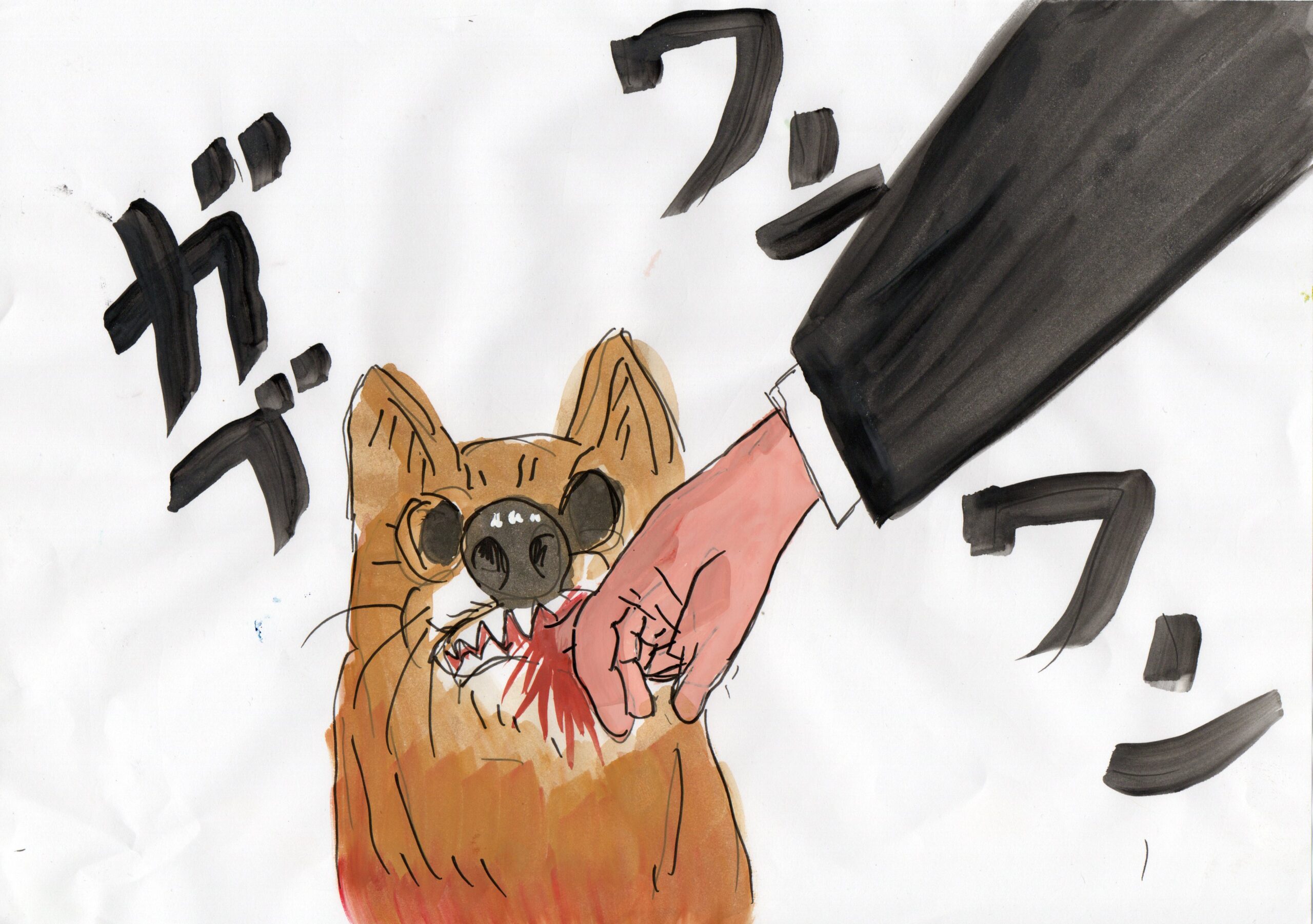 犬が思い切り噛みついていた。